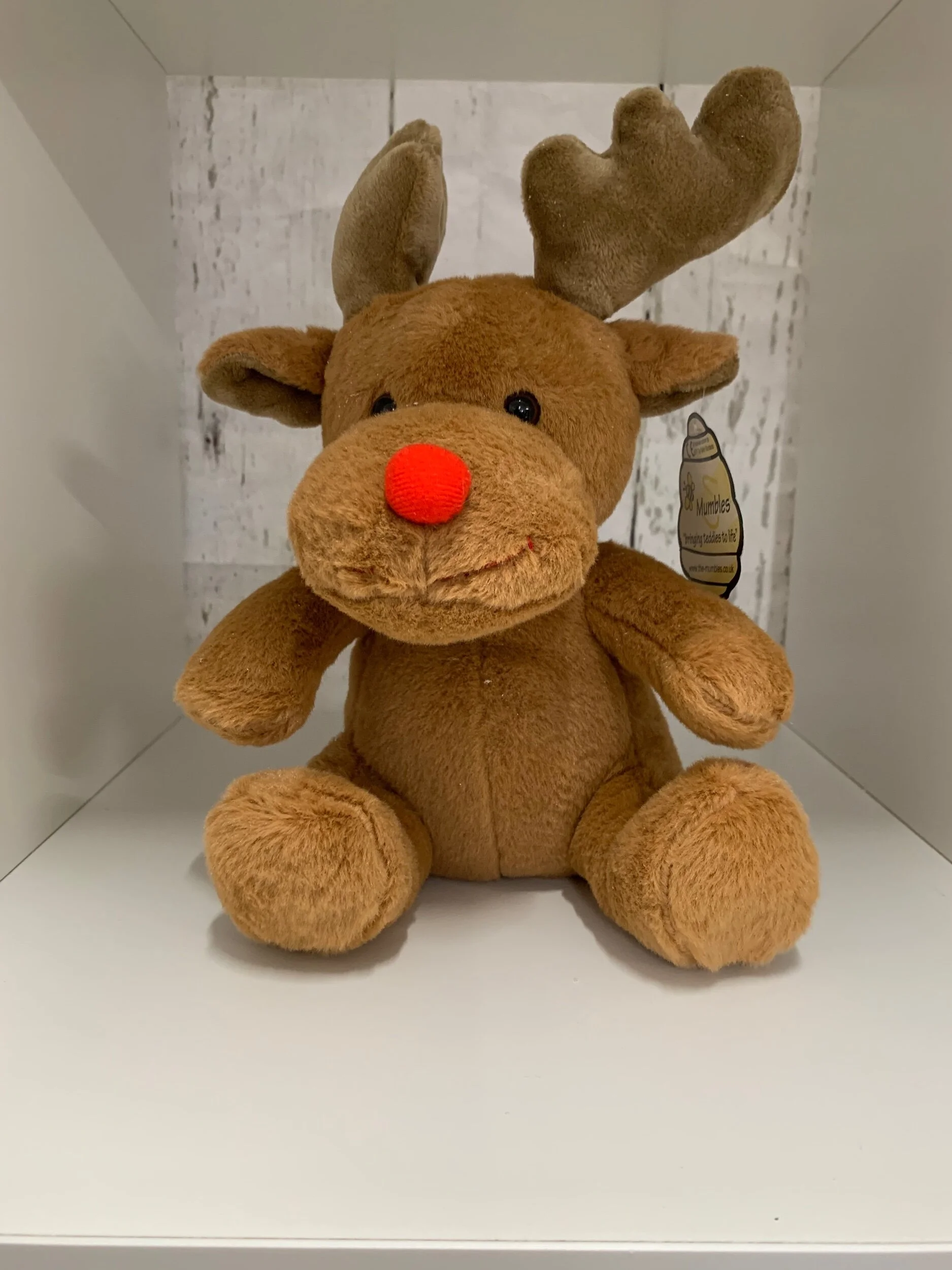 Christmas Shop › Soft Reindeer Soft Toy Image 1 of 5 Image 2 of 5 Image 3 of 5 Image 4 of 5 Image 5 of 5 Soft Reindeer Soft Toy from £8.00 Brown reindeer by MumblesCan be personalised using Red GlitterHeight approx 30cm Options: Select Options Plain Personalised Quantity: Add To Cart Added! Brown reindeer by MumblesCan be personalised using Red GlitterHeight approx 30cm