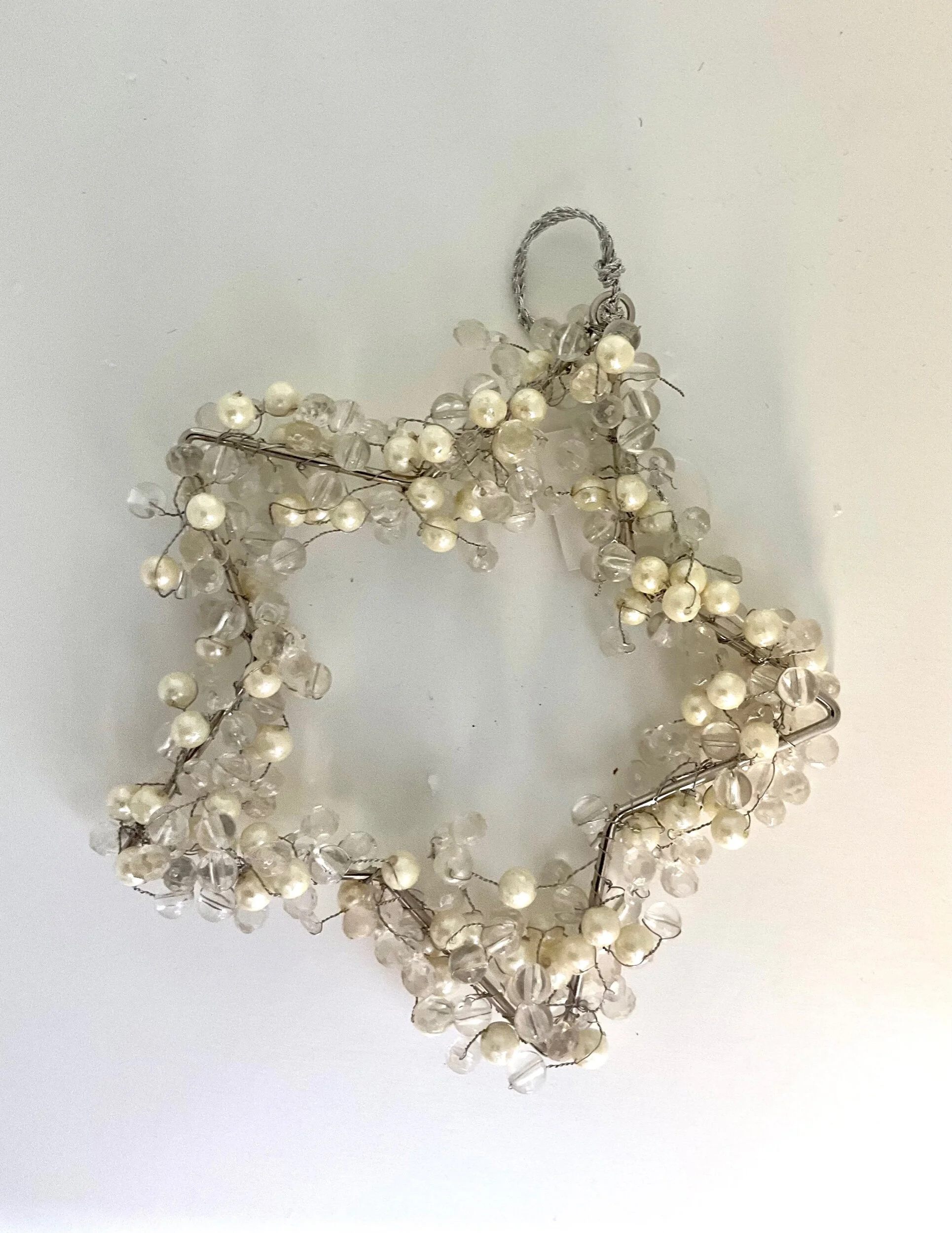 Christmas Shop › Beaded Star Decoration Image 1 of 1 Beaded Star Decoration £5.00 Large beaded hanging star decoration, crystals & pearl beads on a wire frame. H15 x W15cm Quantity: Add To Cart Added! Large beaded hanging star decoration, crystals & pearl beads on a wire frame. H15 x W15cm