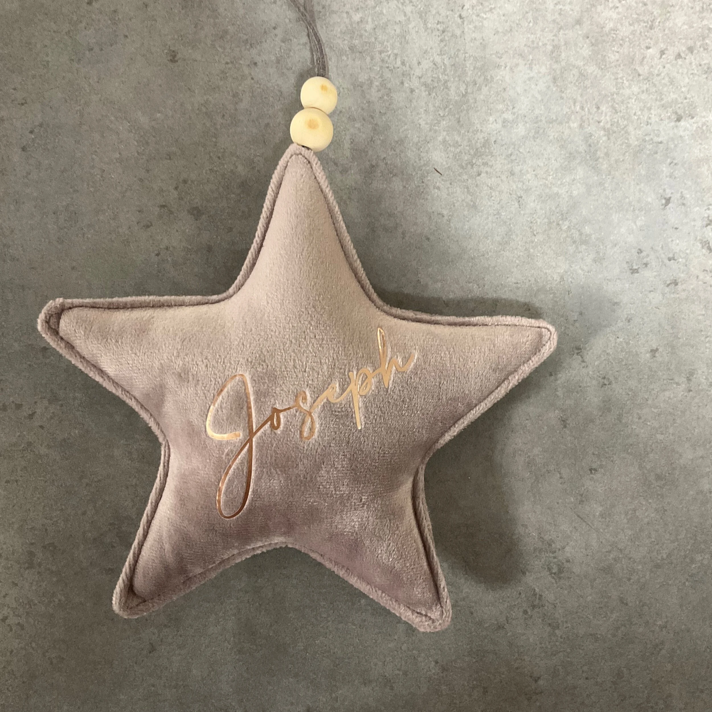 Christmas Shop › Velvet Hanging Star Image 1 of 5 Image 2 of 5 Image 3 of 5 Image 4 of 5 Image 5 of 5 Velvet Hanging Star from £4.00 Velvet hanging star in a blush colour with the option of personalisation. Design: Select Design Plain (not personalised) Rose Gold Copper Glitter Grey Silver Glitter Gold Glitter Quantity: Add To Cart Added! Velvet hanging star in a blush colour with the option of personalisation.