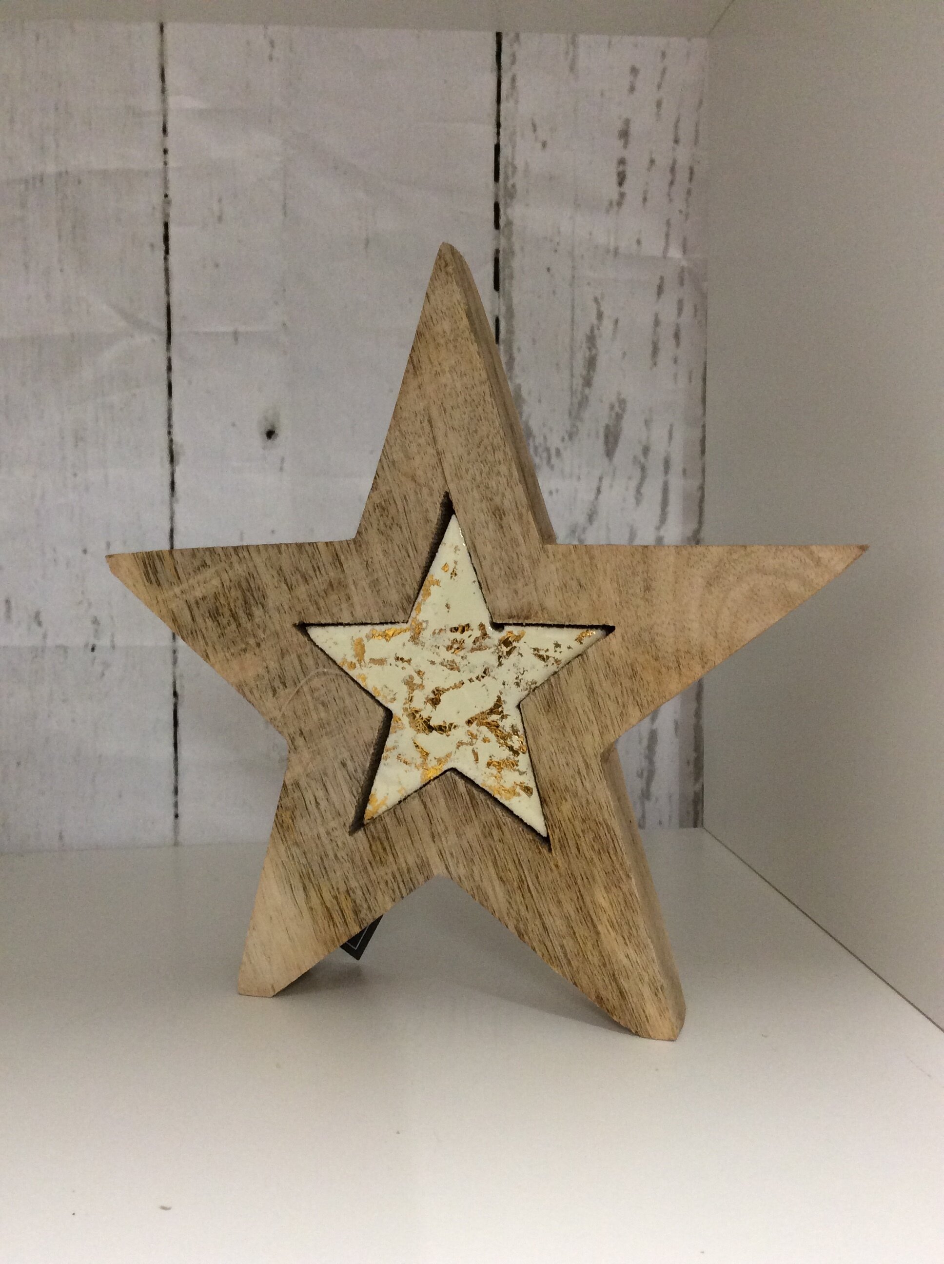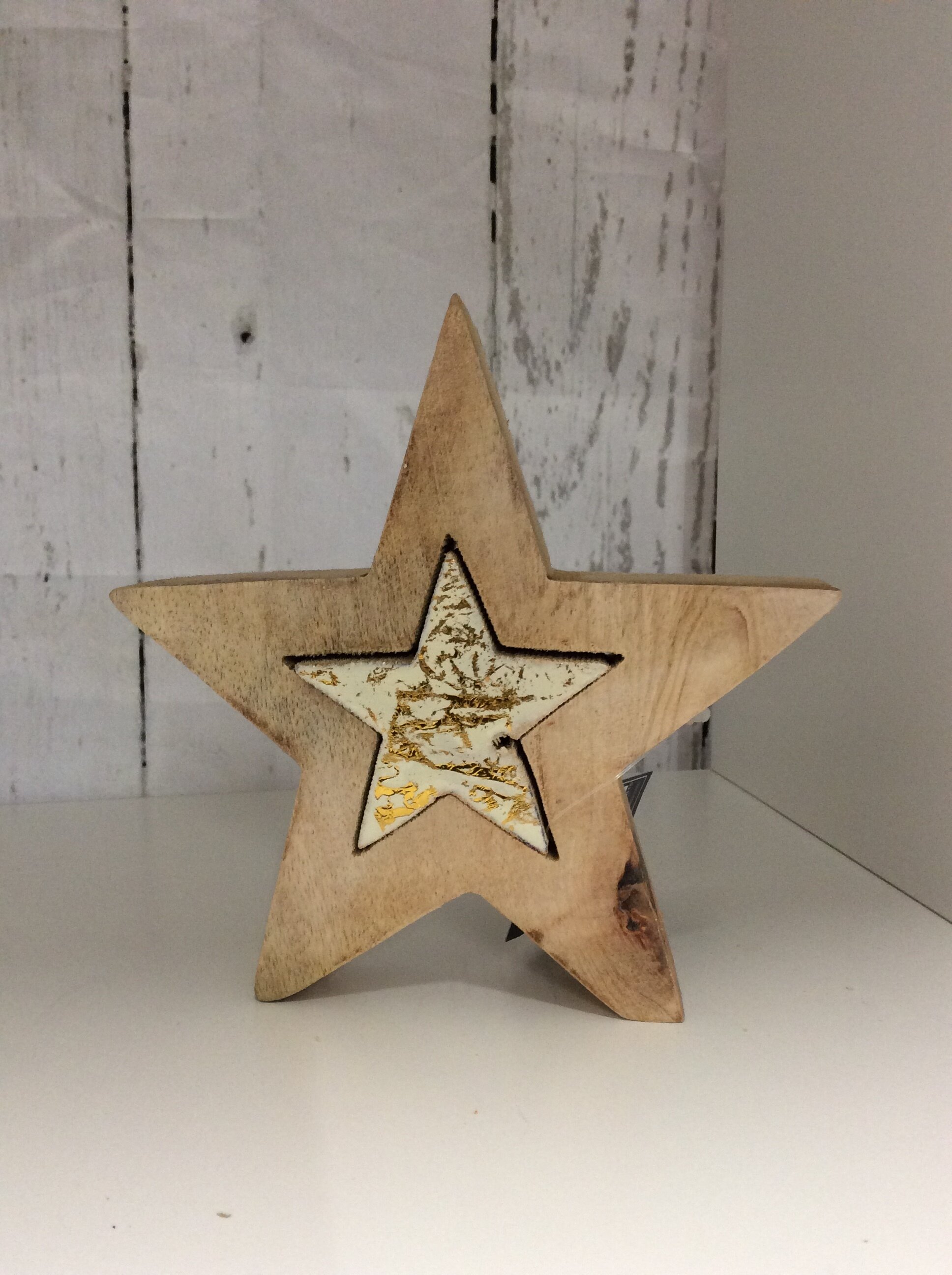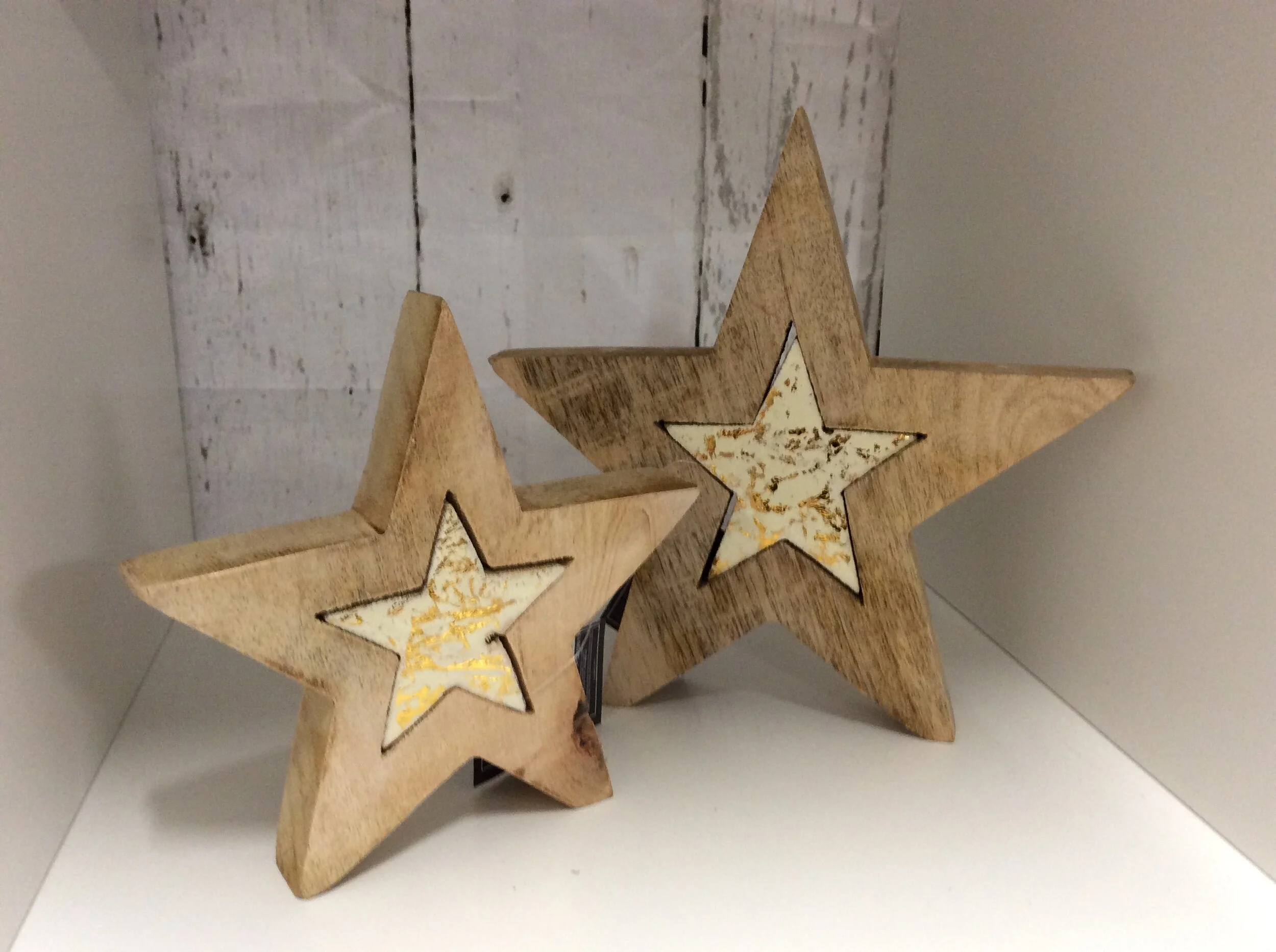 Christmas Shop › Standing Star With a Smaller White Star In The Middle Image 1 of 3 Image 2 of 3 Image 3 of 3 Standing Star With a Smaller White Star In The Middle from £6.00 Rustic Wooden DecorationSmall or Large Size with a small star in the middleSmall 16cmLarge 21cm Size: Select Size Large Small Quantity: Add To Cart Added! Rustic Wooden DecorationSmall or Large Size with a small star in the middleSmall 16cmLarge 21cm