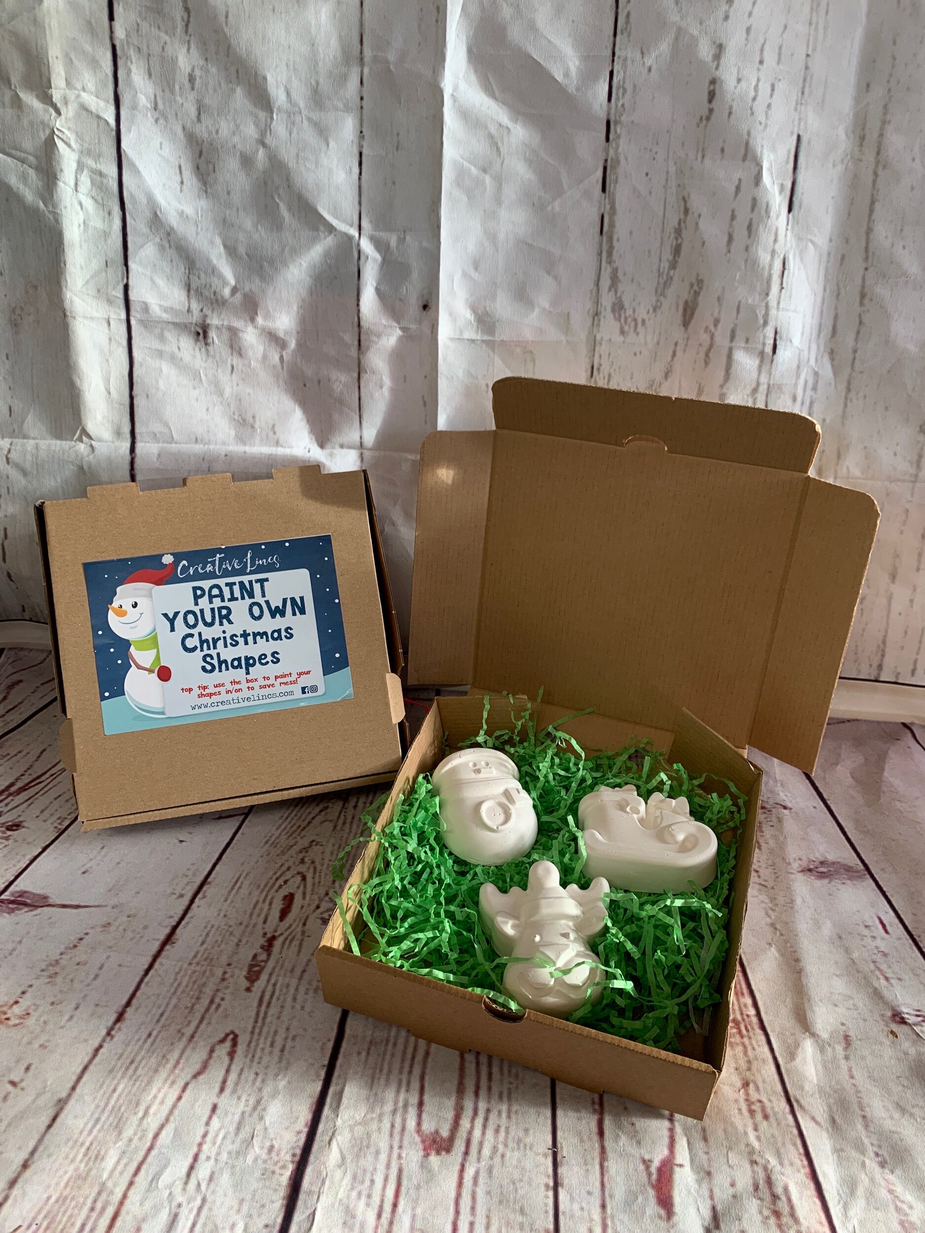Christmas Shop › Paint Your Own Christmas Shapes Image 1 of 6 Image 2 of 6 Image 3 of 6 Image 4 of 6 Image 5 of 6 Image 6 of 6 Paint Your Own Christmas Shapes from £0.50 Paint Your Own Christmas Shapes Box Contains Snowman, Sleigh & ReindeerBrush & 3 Paints Sold Separately Style: Select Style Set of Shapes Brush & Paint Set Quantity: Add To Cart Added! Paint Your Own Christmas Shapes Box Contains Snowman, Sleigh & ReindeerBrush & 3 Paints Sold Separately