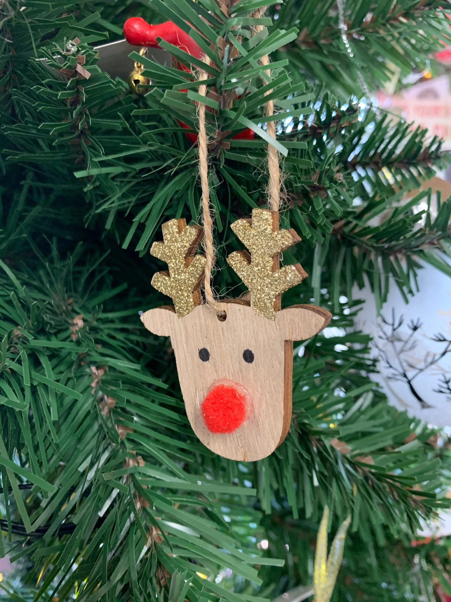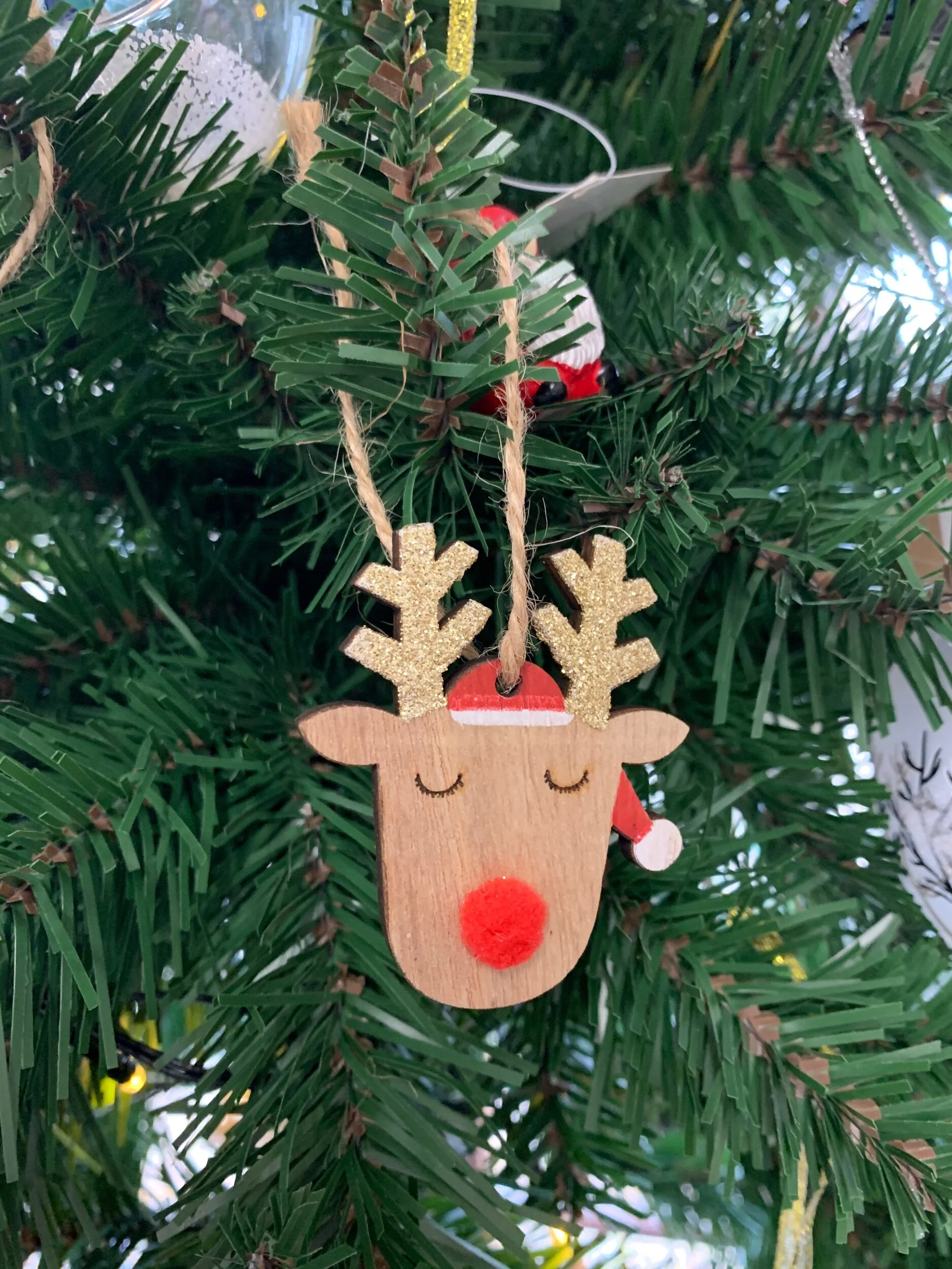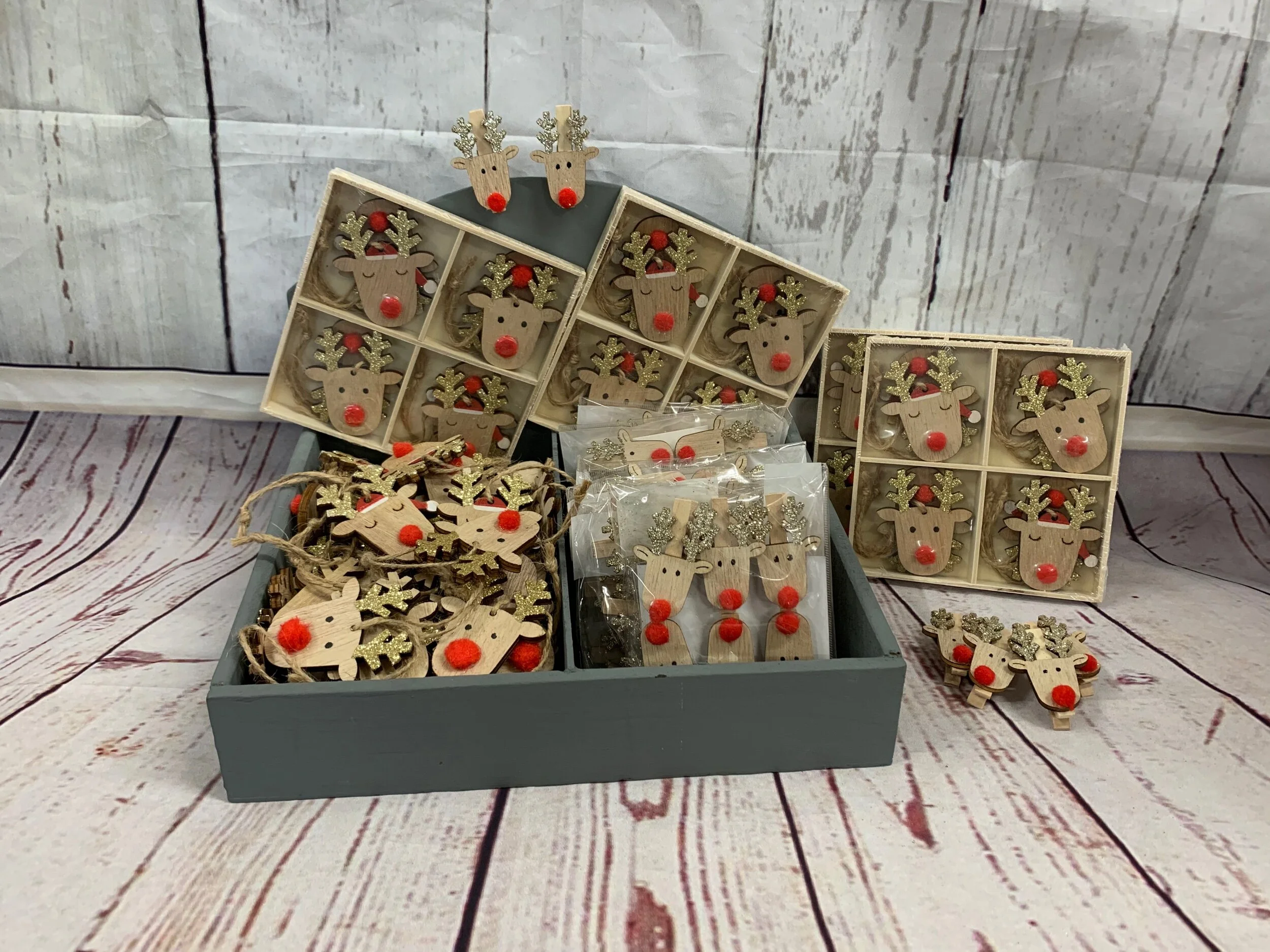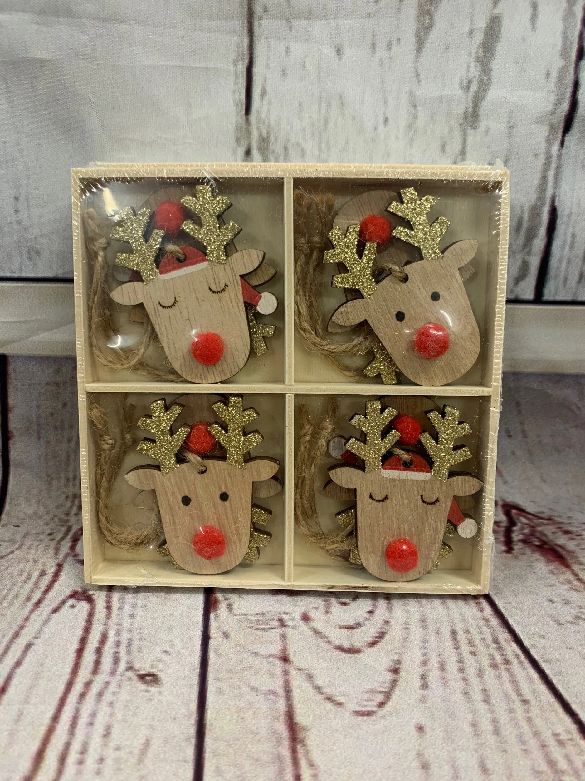 Wooden Reindeer Decorations with Gold Glitter Antlers