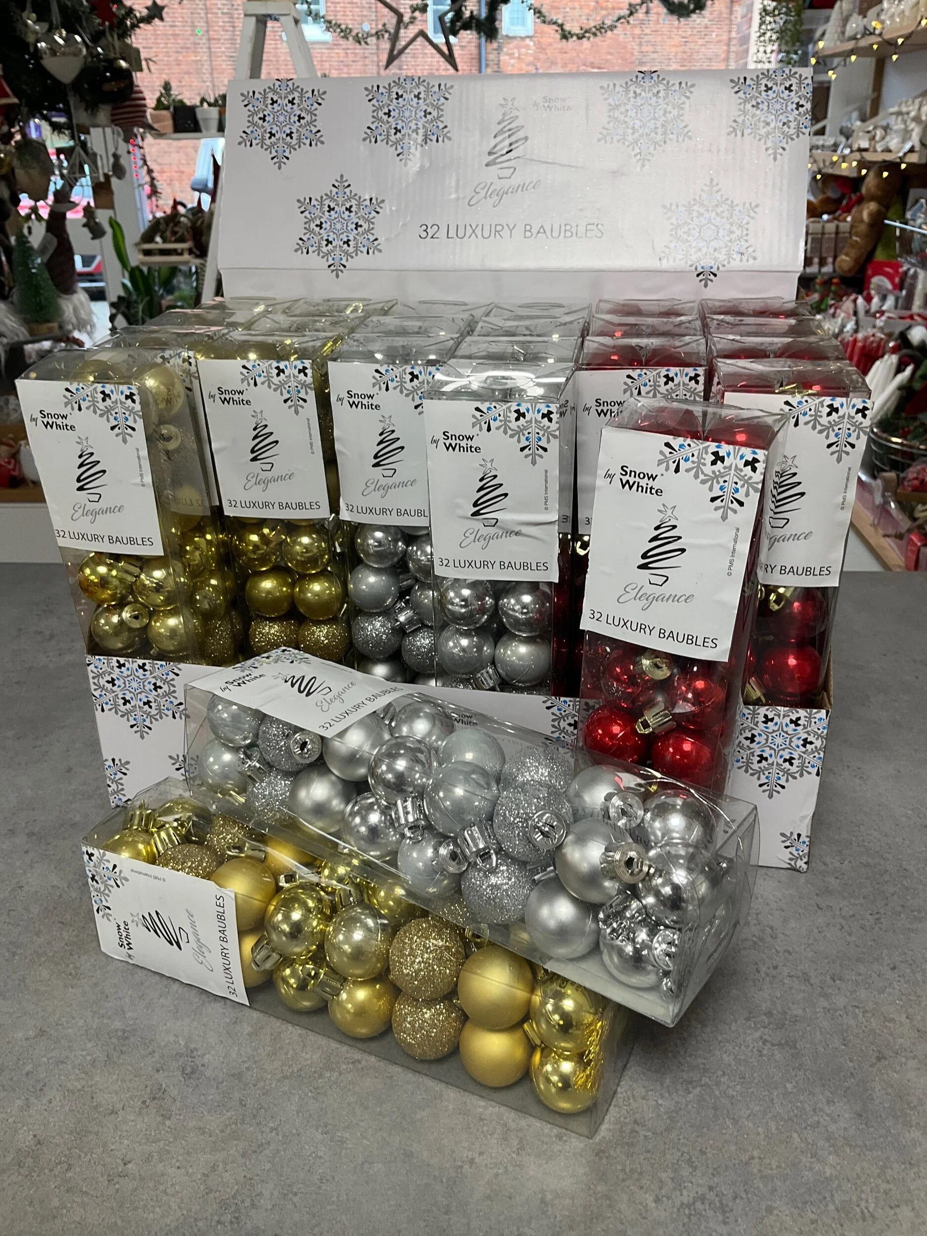 Christmas Shop › Set of 32 Luxury Baubles Set Image 1 of 4 Image 2 of 4 Image 3 of 4 Image 4 of 4 Set of 32 Luxury Baubles Set £4.50 32 Small Baubles, Mixture of Plain and Gittery Approx 2.5cmChoose From Gold, Silver or Red Colour: Gold Silver Red Quantity: Add To Cart Added! 32 Small Baubles, Mixture of Plain and Gittery Approx 2.5cmChoose From Gold, Silver or Red