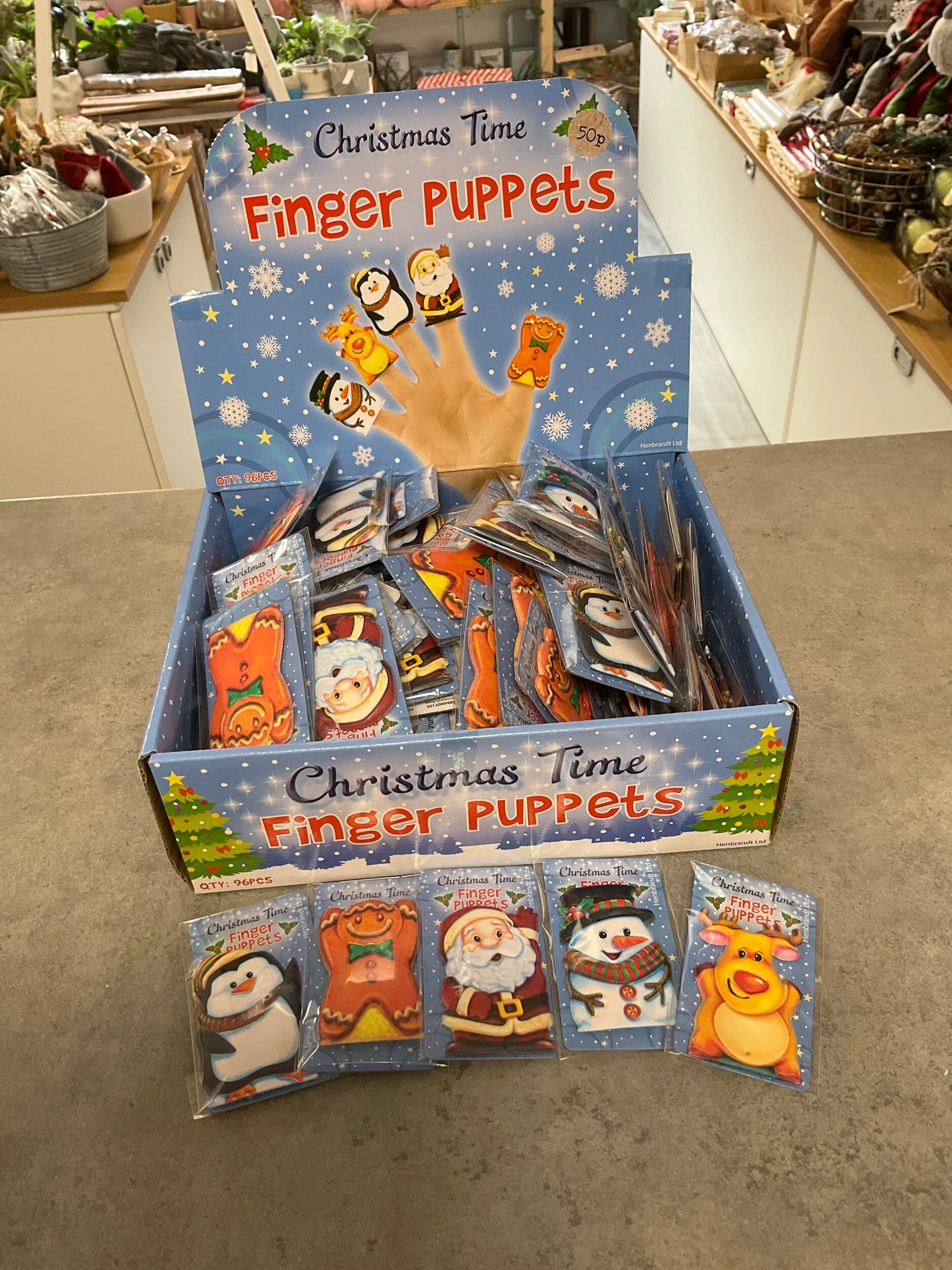 Christmas Shop › Christmas Time Finger Puppets Image 1 of 6 Image 2 of 6 Image 3 of 6 Image 4 of 6 Image 5 of 6 Image 6 of 6 Christmas Time Finger Puppets £0.50 Novelty Finger Puppets5 Xmas Designs to Choose FromApprox 5cm Style: Snowman Santa Gingerbread Penguin Reindeer Quantity: Add To Cart Added! Novelty Finger Puppets5 Xmas Designs to Choose FromApprox 5cm
