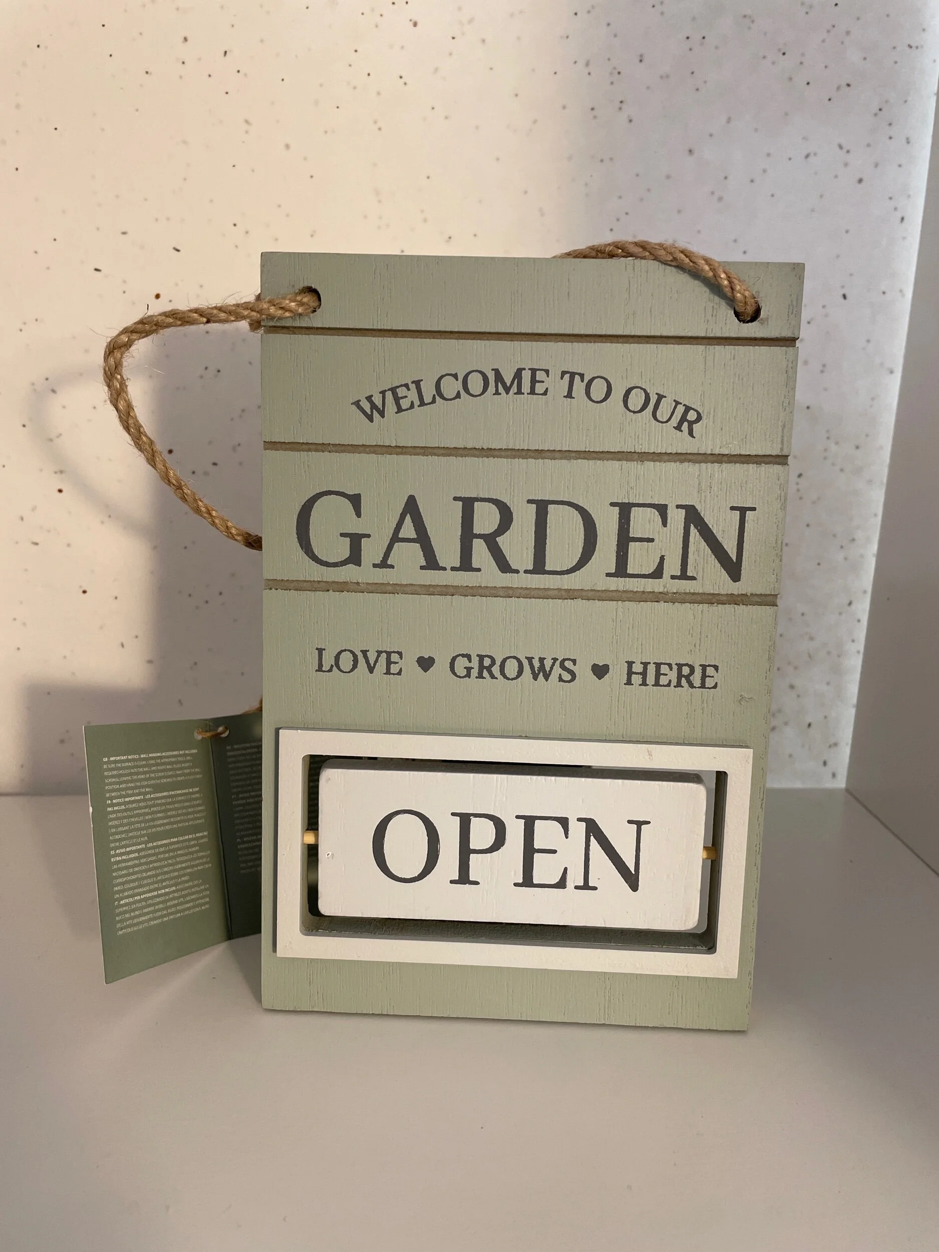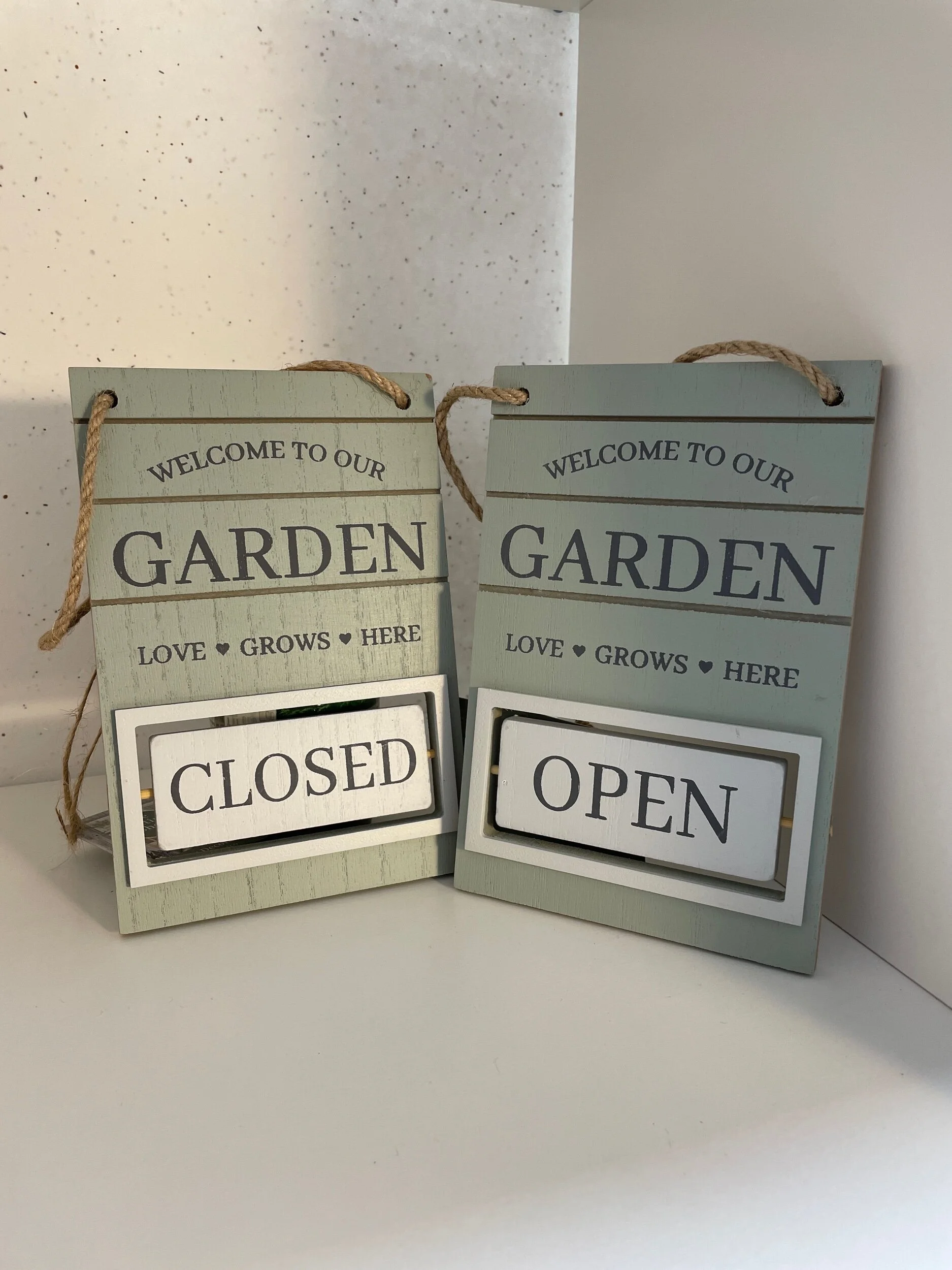 Gift Shop › Garden Hanging Decoration Image 1 of 2 Image 2 of 2 Garden Hanging Decoration £5.00 Wooden Welcome to Our Garden SignRotating Open / Close FeatureApprox 12 x 18cm Quantity: Add To Cart Added! Wooden Welcome to Our Garden SignRotating Open / Close FeatureApprox 12 x 18cm